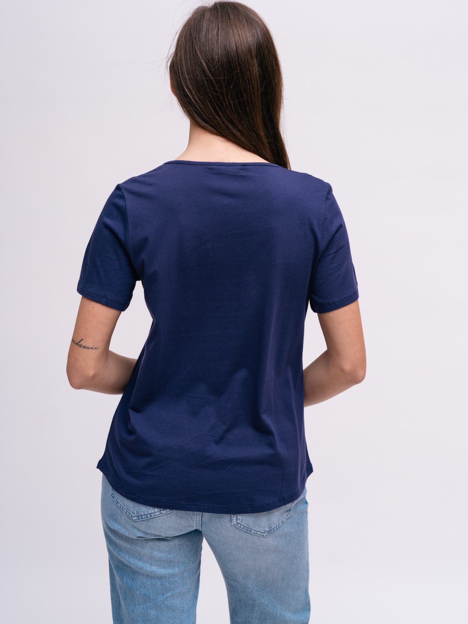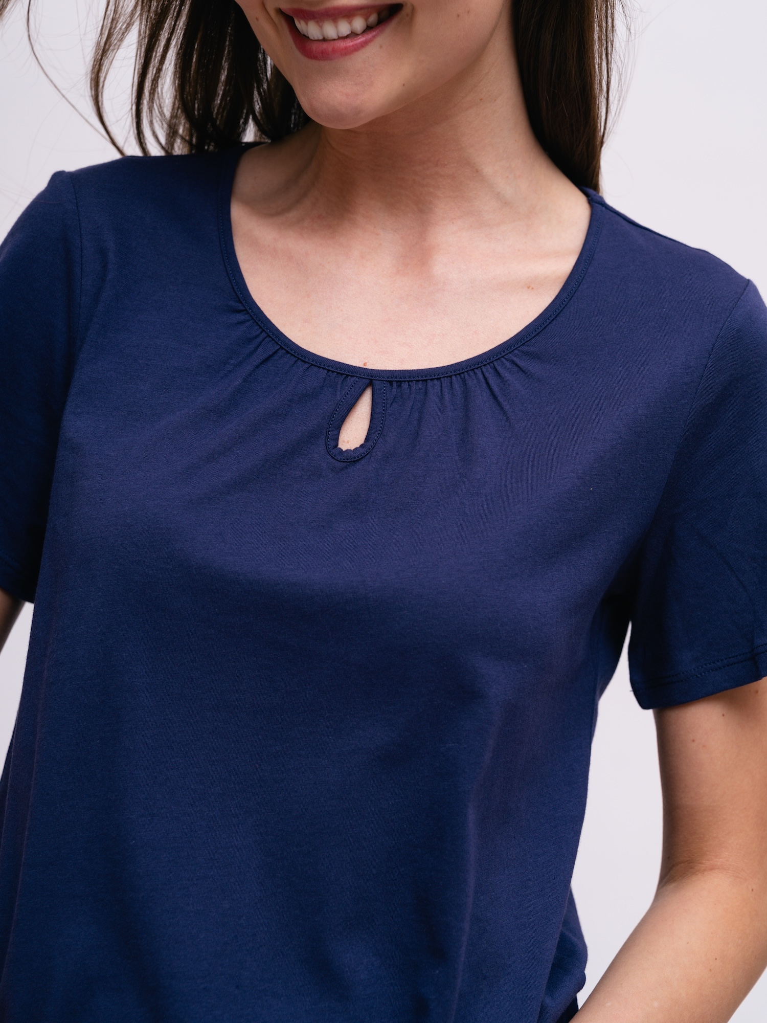 Klasyczny top o prostym kroju w granatowym kolorze to podstawa garderoby. Łatwo łączy się z warstwami i casualowymi stylizacjami.