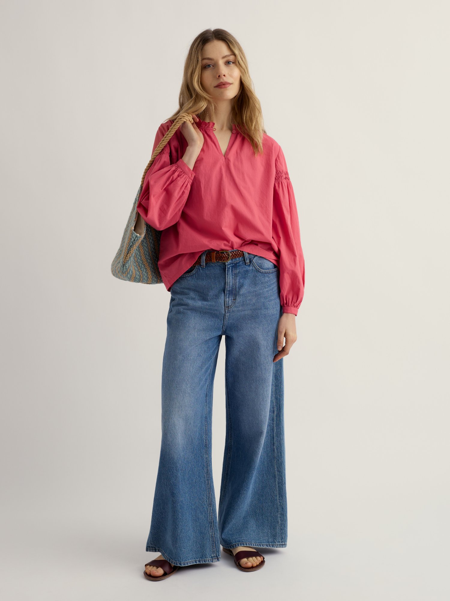 Przewiewny top z wyciętym dekoltem sprawdzi się latem. Luźny fason pozwala skórze oddychać i pasuje do szortów oraz jeansów.