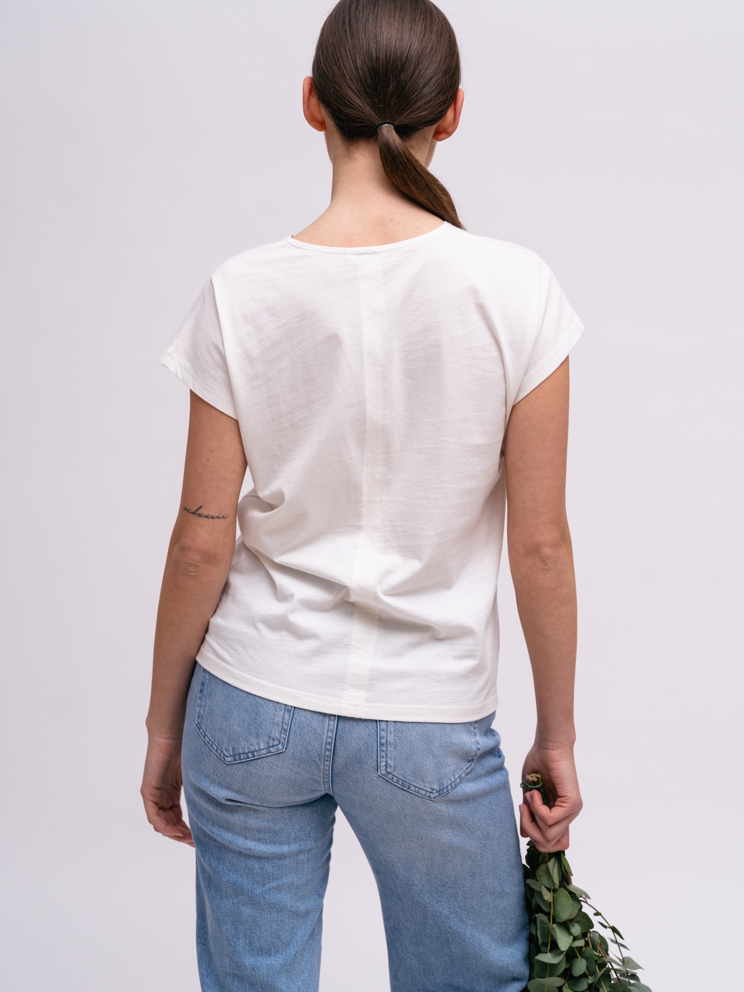 Biały top o prostej linii tworzy uniwersalną bazę. Świetnie sprawdzi się zarówno pod marynarką, jak i solo.
