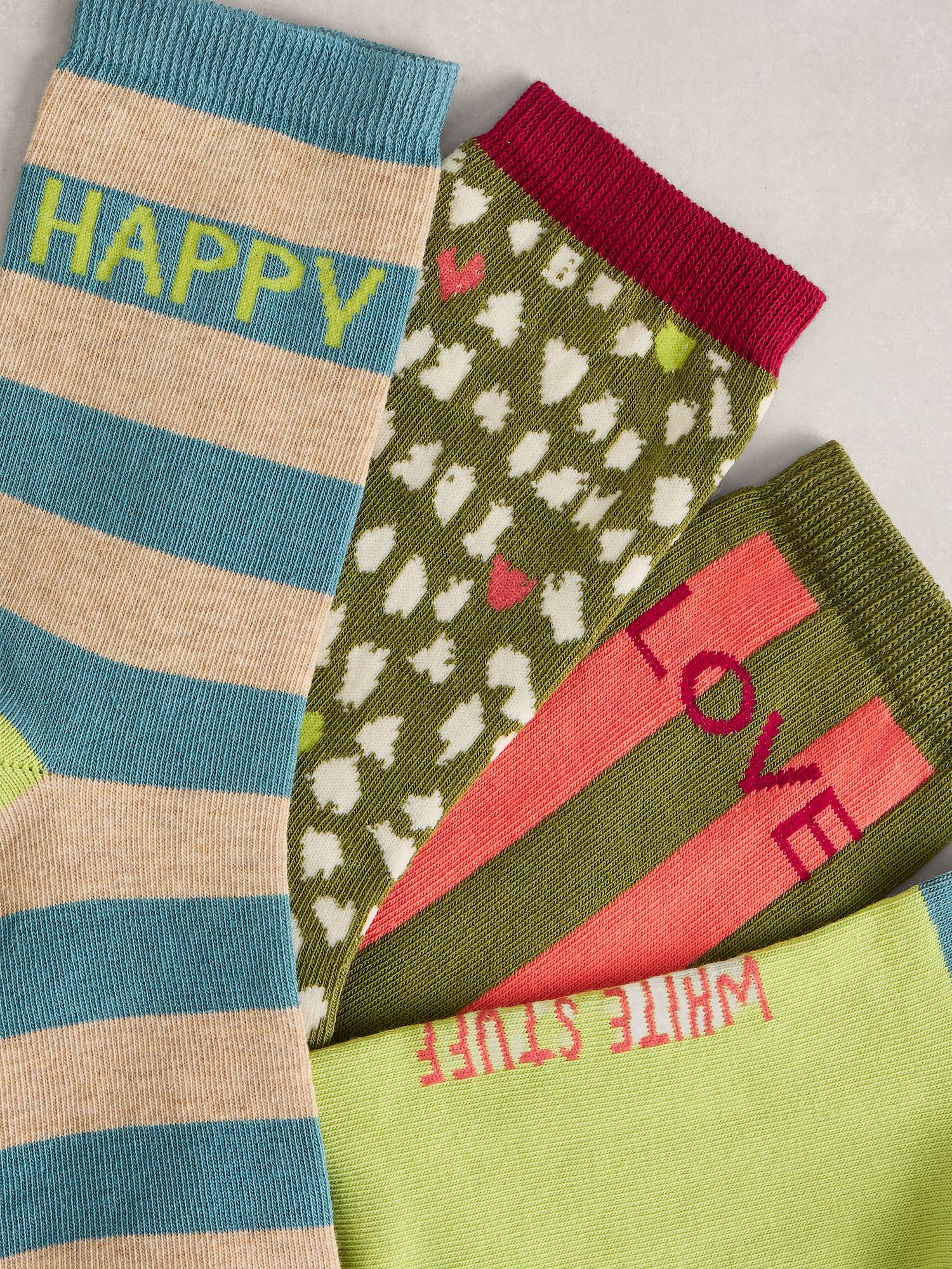 Zestaw w odcieniach zieleni z zabawnymi wzorami. Skarpety dodadzą radości codziennym stylizacjom.