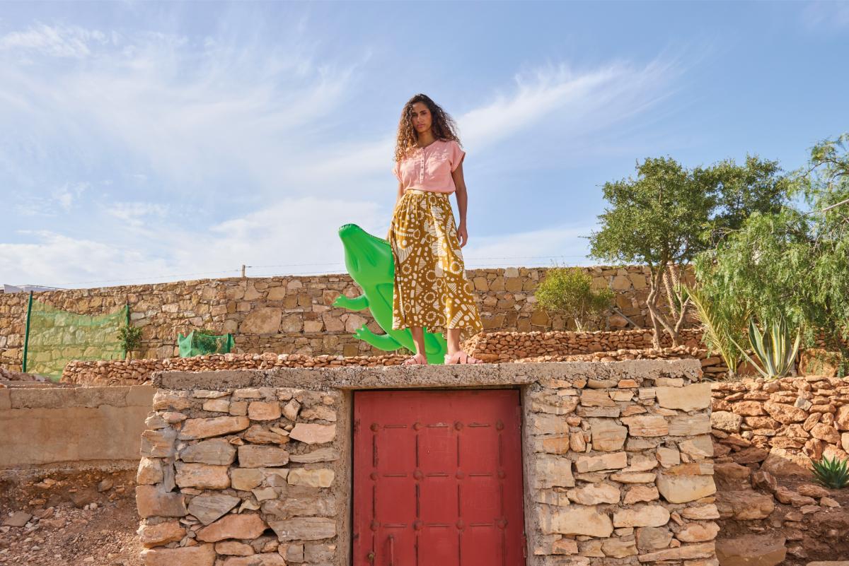 Model/ka ma 175 cm wzrostu i nosi rozmiar M