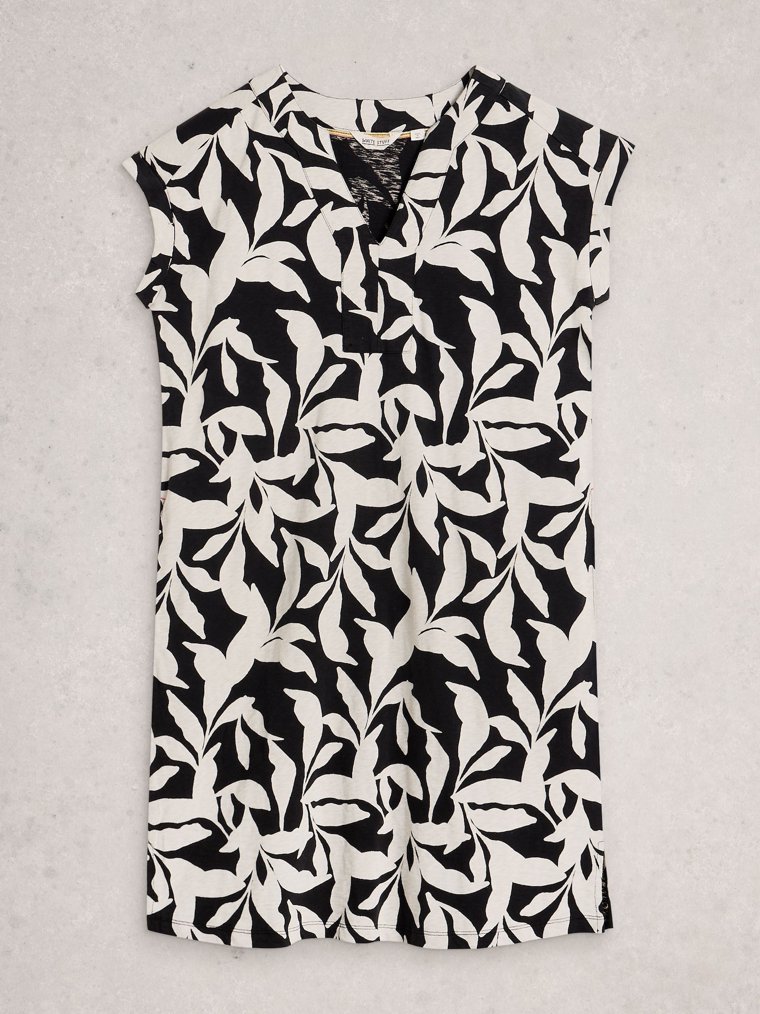 Prosty fason tuniki z wyciętym dekoltem i praktycznymi kieszeniami. Bez podszewki i bez elastyczności; 100 % bawełna Fairtrade, długość 98 cm.