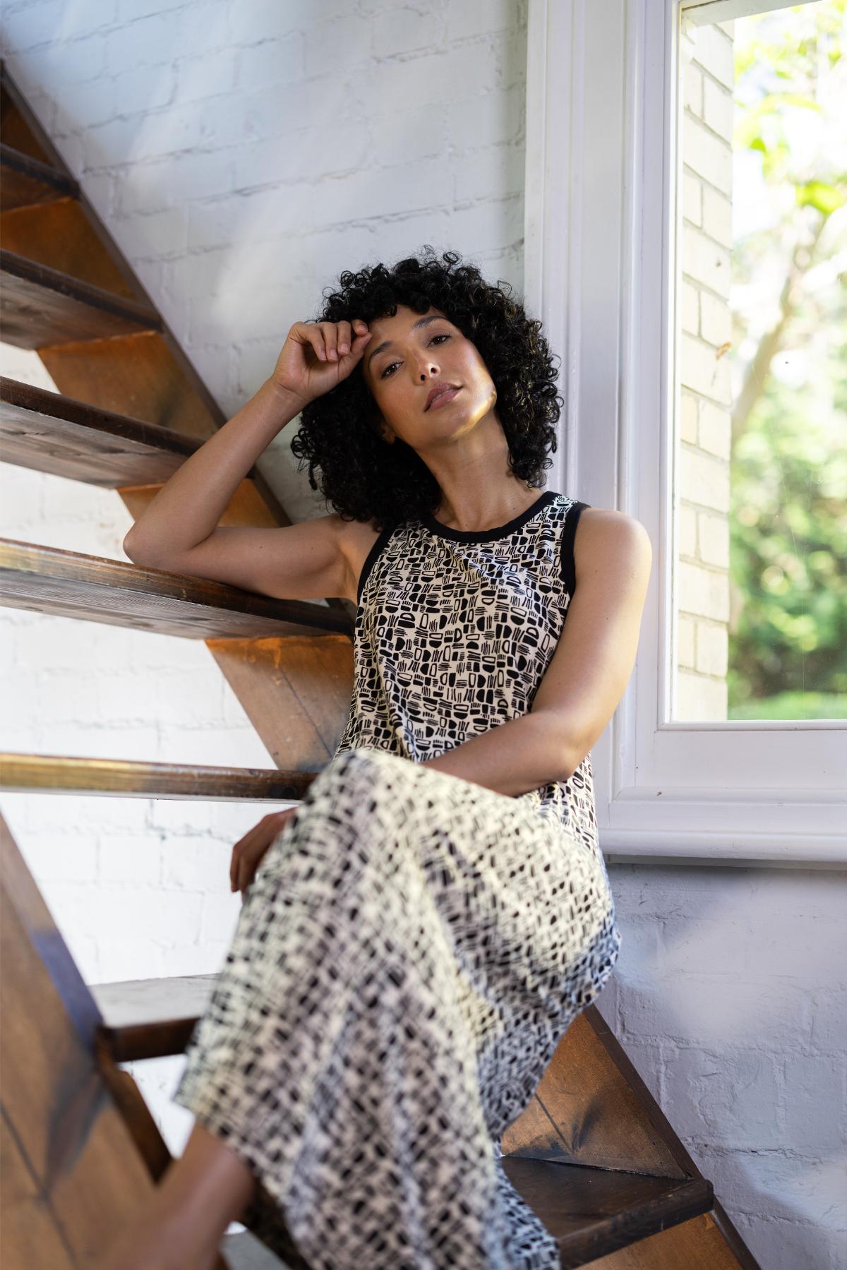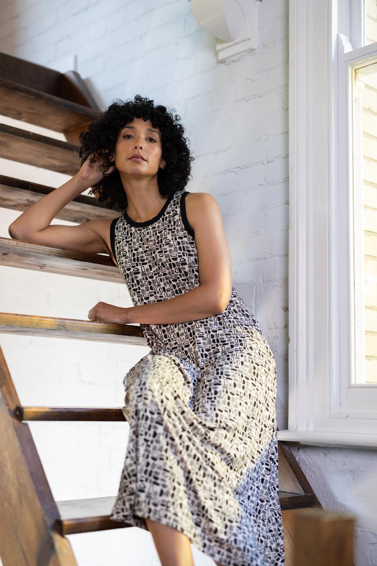 Spływająca sukienka z miękkiego modalu podkreśli elegancję bez wysiłku. Niewielki dodatek elastanu sprawia, że materiał podąża za ruchem i zachowuje kształt.