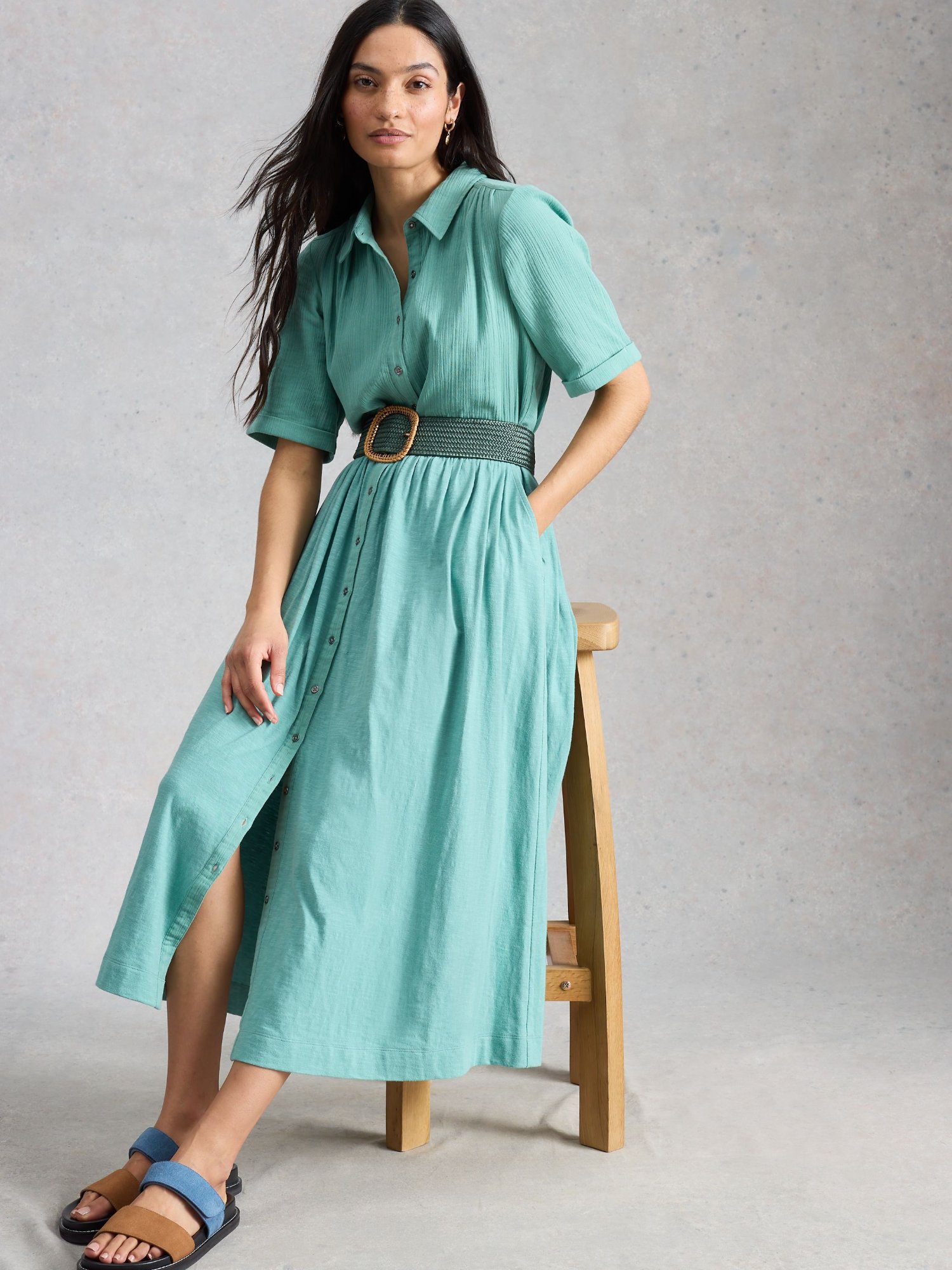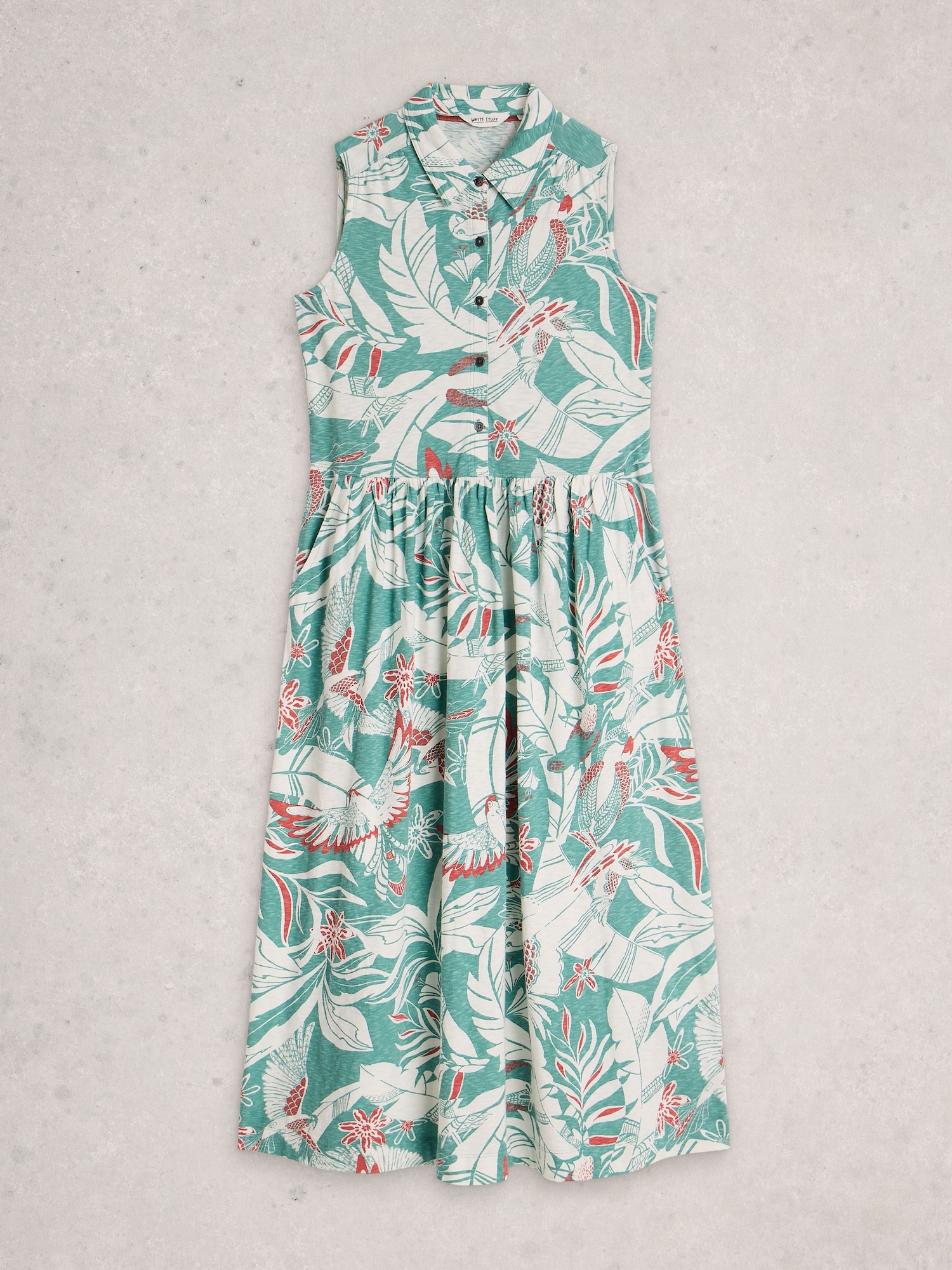 Miękki jersey ze 100% bawełny Fairtrade zapewnia naturalny komfort noszenia. Koszulowy fason z kołnierzykiem i marszczonym dołem tworzy swobodną, letnią sylwetkę.