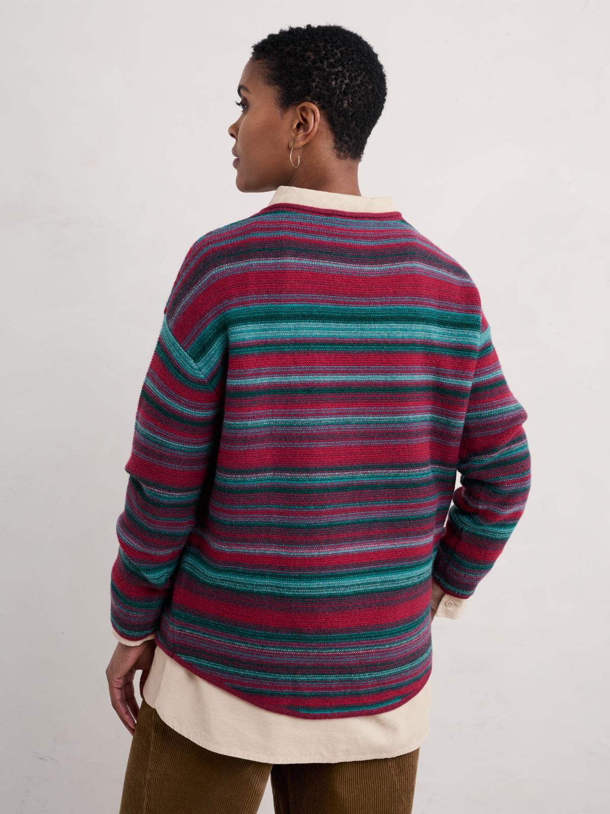 Mech można łatwo usunąć golarką do ubrań lub delikatnie żyletką, zalecamy delikatne pranie zgodnie z instrukcjami na metce oraz suszenie na płasko na ręczniku. Dzięki takiej pielęgnacji sweter zachowa swój piękny wygląd i jakość przez długi czas.