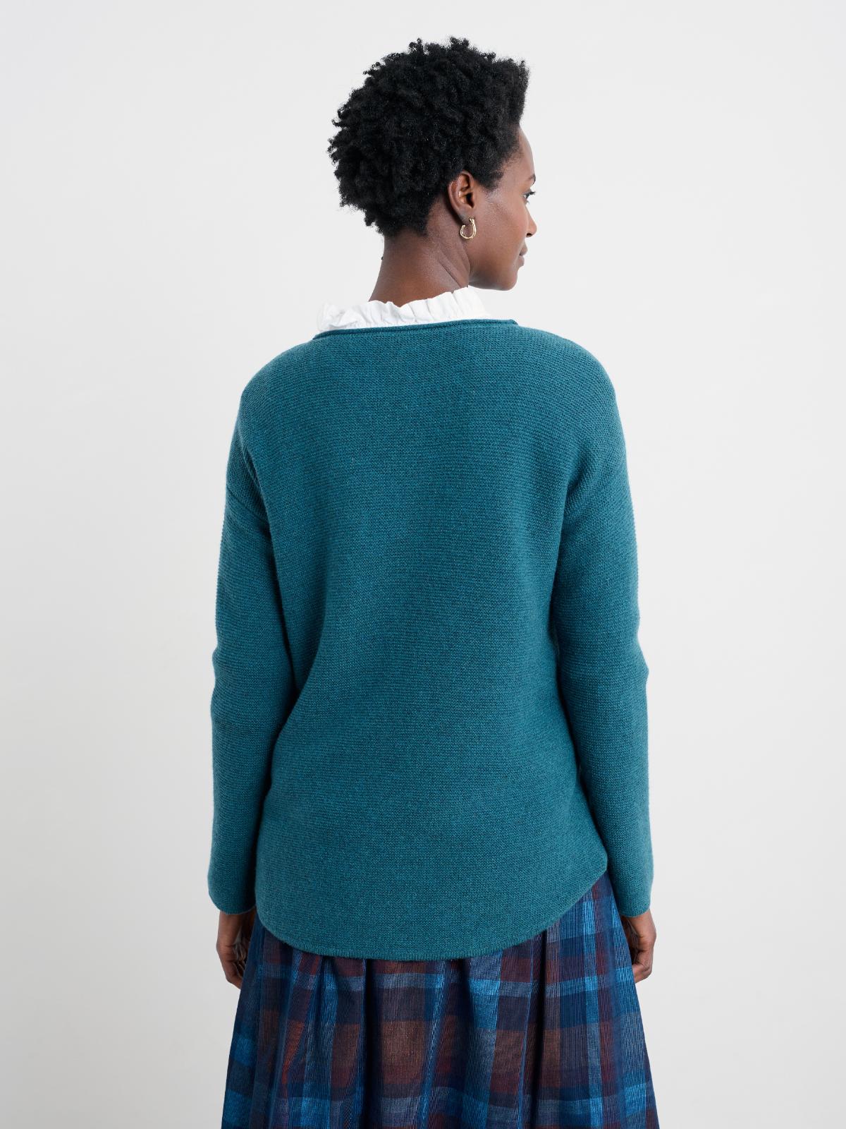 Mech można łatwo usunąć golarką do ubrań lub delikatnie żyletką, zalecamy delikatne pranie zgodnie z instrukcjami na metce oraz suszenie na płasko na ręczniku. Dzięki takiej pielęgnacji sweter zachowa swój piękny wygląd i jakość przez długi czas.